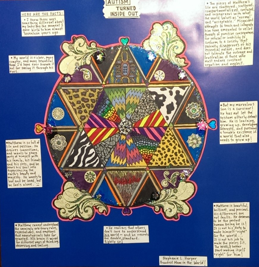 I recently created this mandala, which ended up becoming a cathartic, stream-of-consciousness way for me to express some of my current feelings about raising a bright and talented son who has autism.